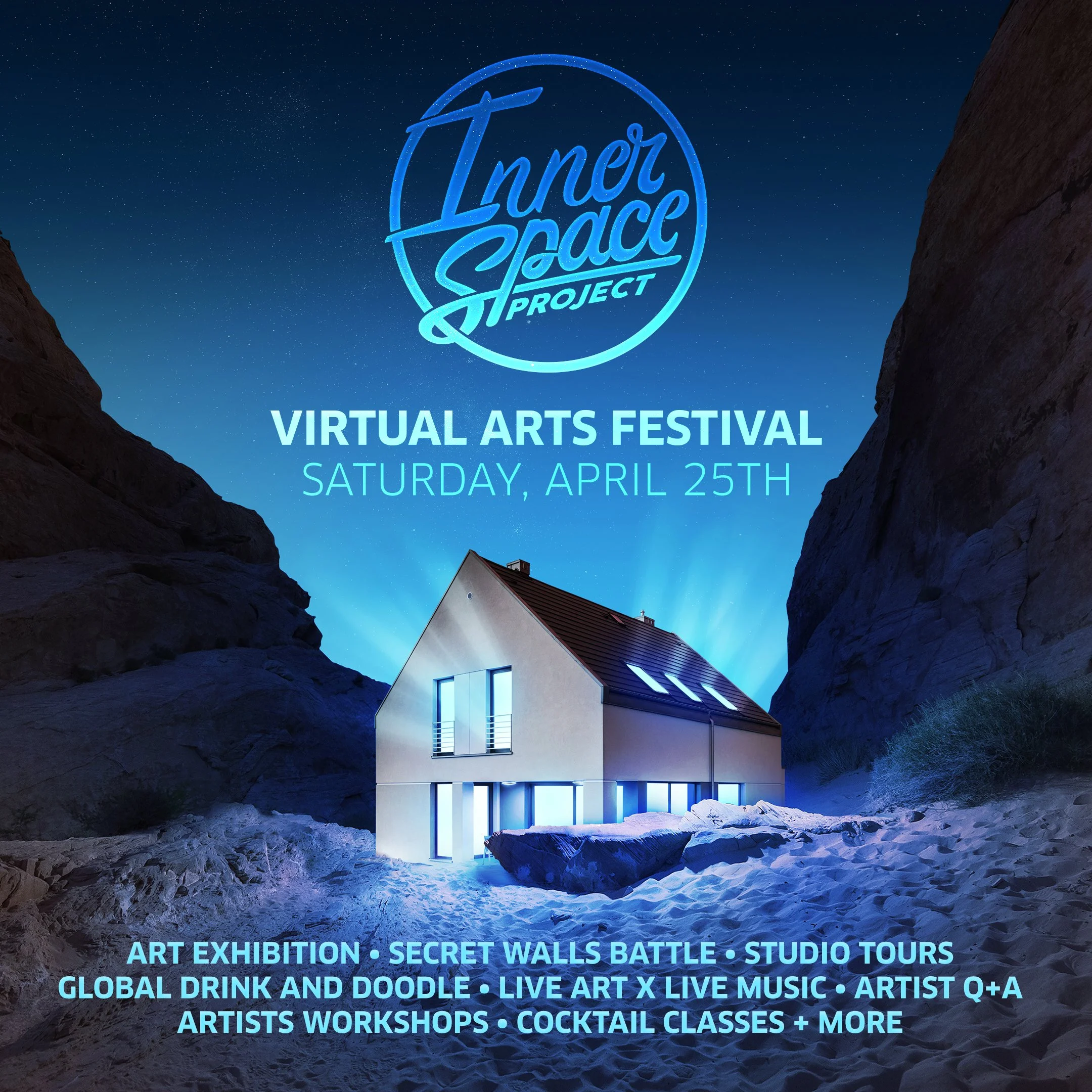 InnerSpace Project was broadcast live to attendees on Saturday, April 25th. Throughout the day, viewers recieved an exclusive experience filled with live art sessions, studio tours, Clean Break interviews, a Secret Walls Illustration Battle, a Jack Daniel's cocktail class, a skate demo from Elliot Sloan, DJ sets, and more. Participants also recieved access to two virtual art exhibitions.